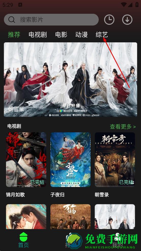 1、在首页,点击综艺,进入综艺分类页面。