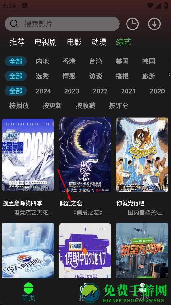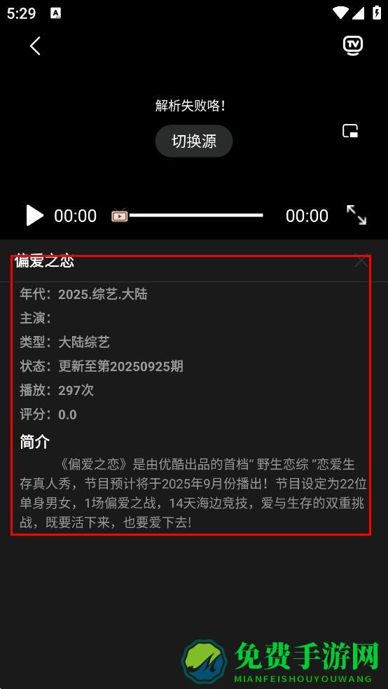4、在播放页面,可查看偏爱之恋的年代、类型、状态等信息及简介。
