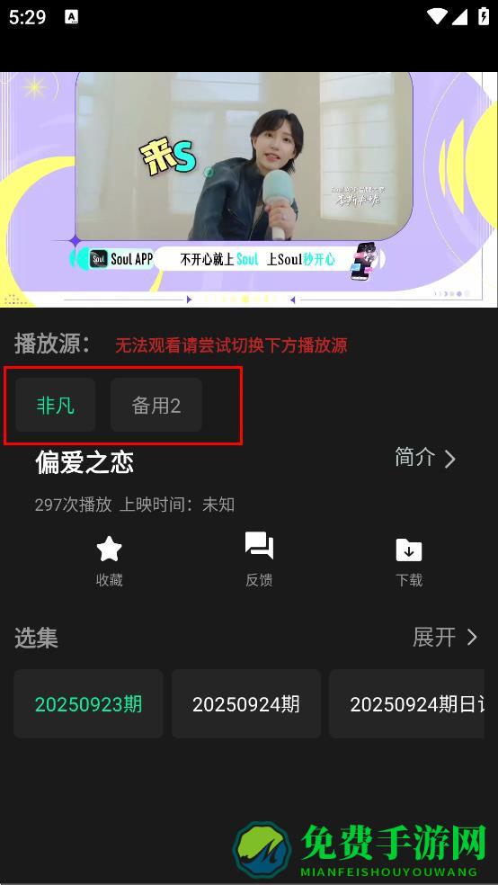 3、在偏爱之恋播放页面,可选择播放源,如非凡或备用2。