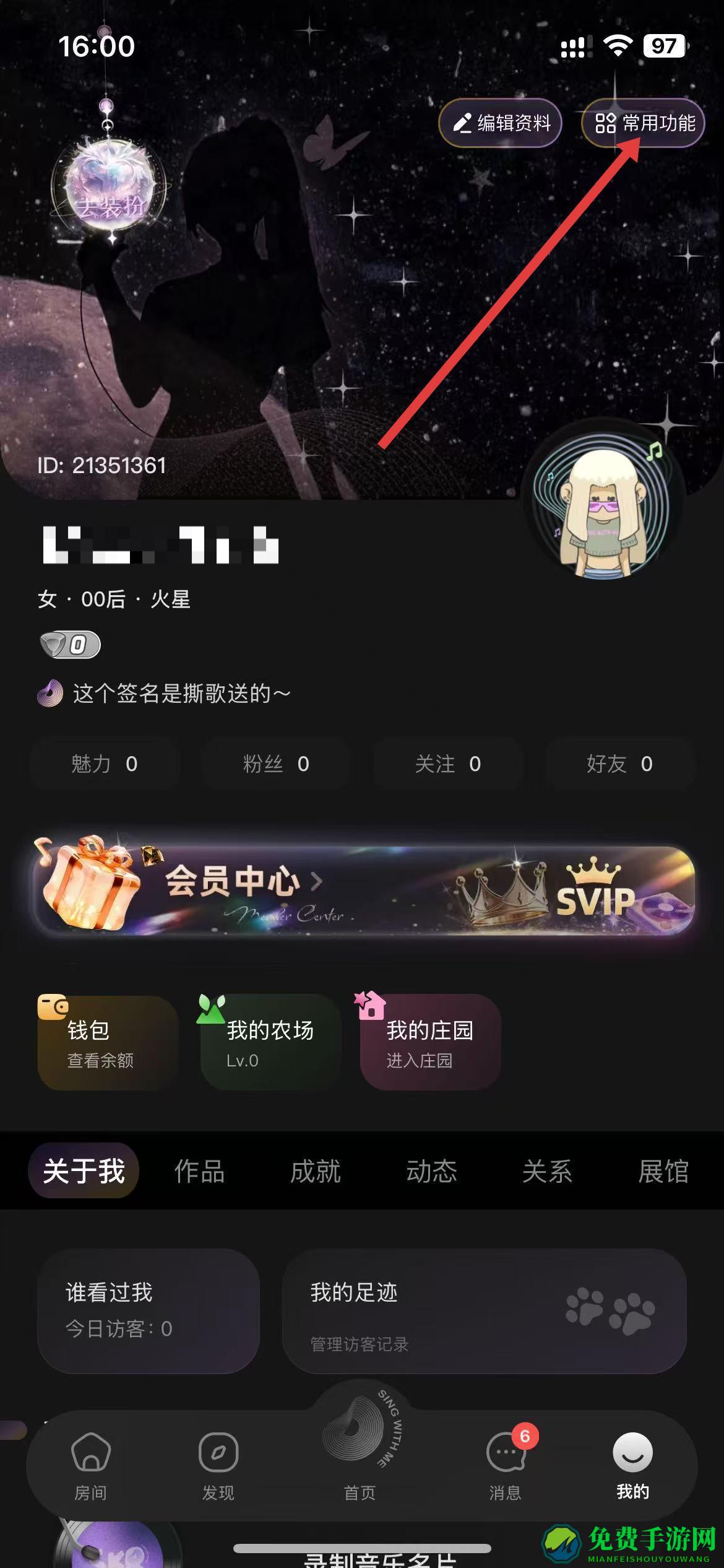 1、点击底部导航栏我的,进入个人界面,点击界面右上角常用功能按钮,在展开选项里找到并点击设置。