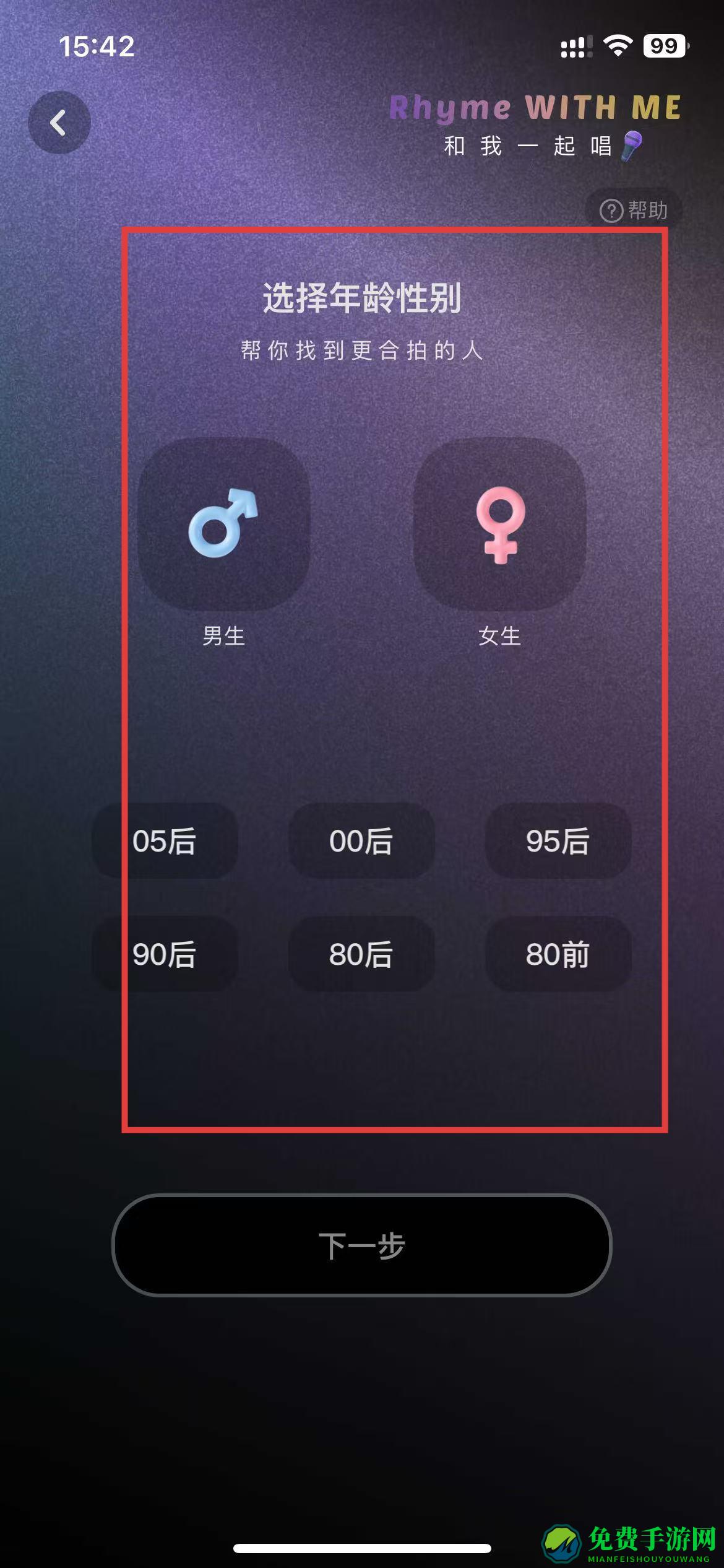 2、登录后,选择好性别和年龄区间,点击下一步。
