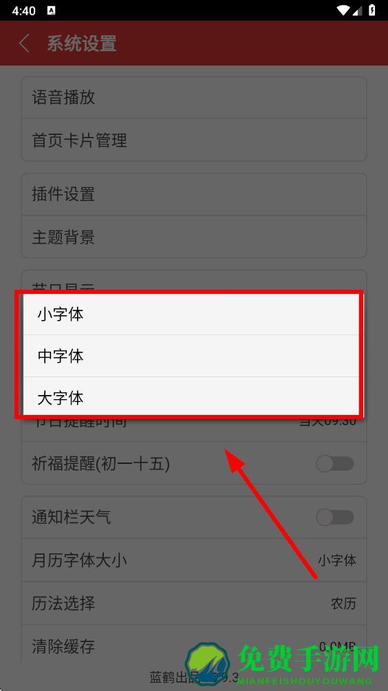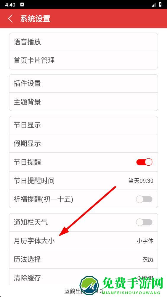 3、在系统设置页面中,找到月历字体大小选项并点击它。