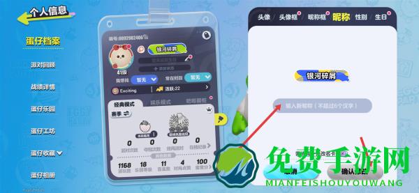 3、在昵称修改界面,删除原有的昵称,输入你想要更换的新昵称 ,点击确认按钮,消耗相应的改名卡,即可完成昵称更换。