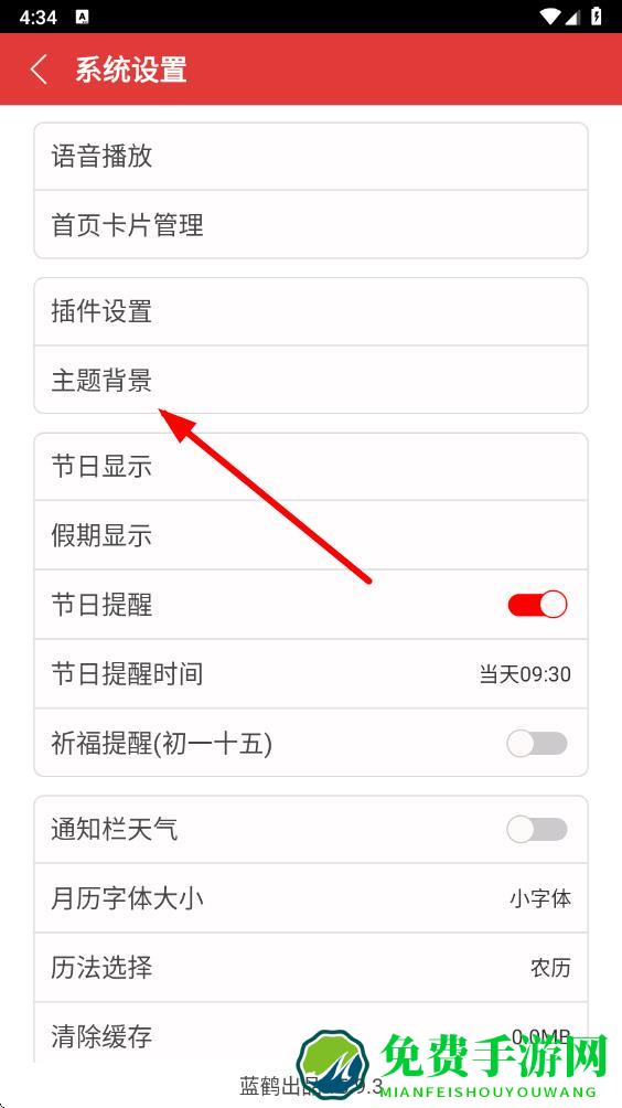 3、在系统设置页面中,找到并点击主题背景选项。