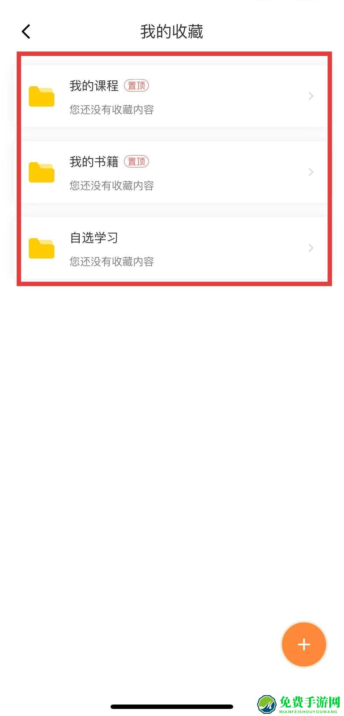 3、点击收藏进入收藏页面后,能看到我的课程,我的书籍,自选学习等分类文件夹,可以快速找到之前收藏的课程、书籍和学习内容。