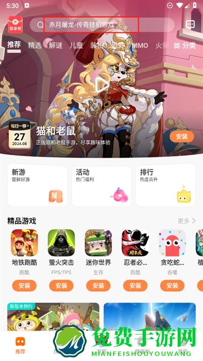 1、进入软件后可以通过上方搜索栏目中搜索游戏,轻松找寻本站中的各种游戏资源;