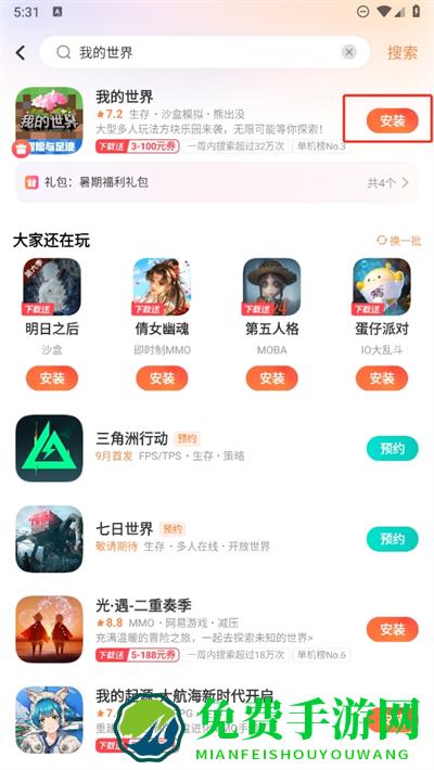 2、我们以我的世界为例,直接点击安装进行下载就可以下载到本地中进行游玩;