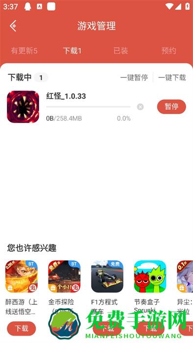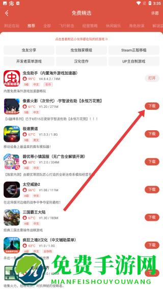 3、在免费精选界面,找到目标游戏,点击其右侧的下载按钮,开始获取该游戏资源。