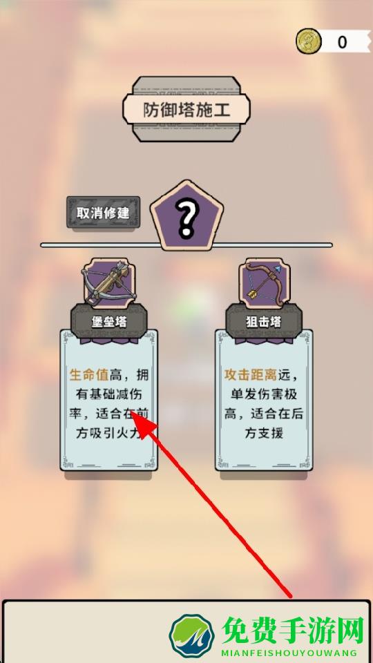 3、进入防御塔施工,堡垒塔生命值高且有基础减伤率,狙击塔攻击距离远、单发伤害高,适合在后方支援。