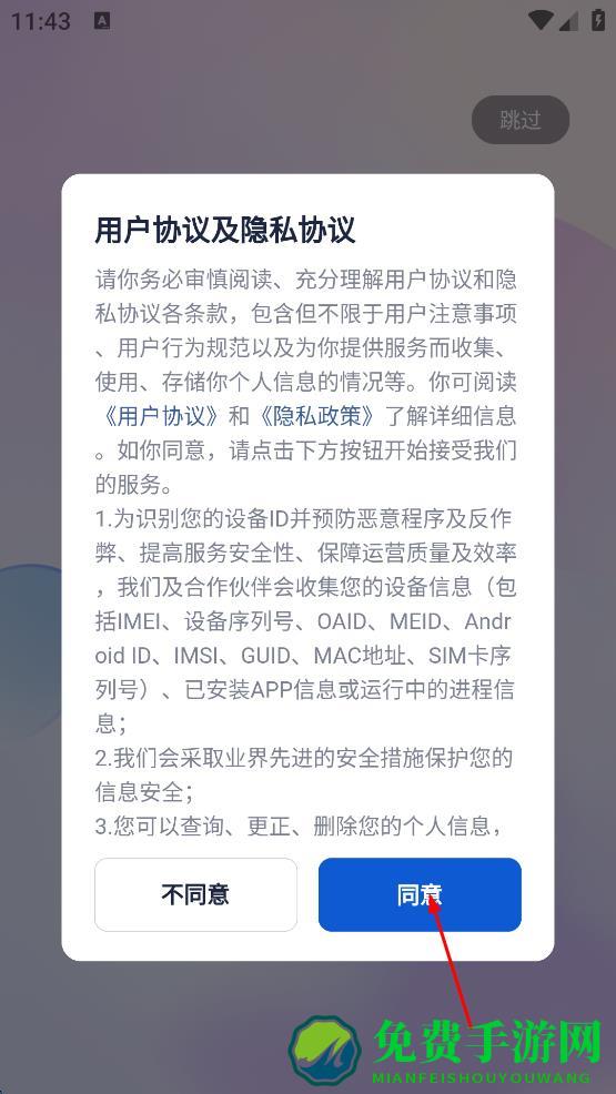 1、打开该视频创作App,出现用户协议及隐私协议弹窗,阅读后点击同意按钮。