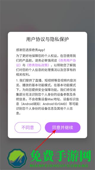 1、在用户协议与隐私保护弹窗中,点击同意并继续,进入APP。