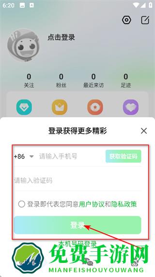 4、输入手机号、验证码,点击登录,完成登录操作。