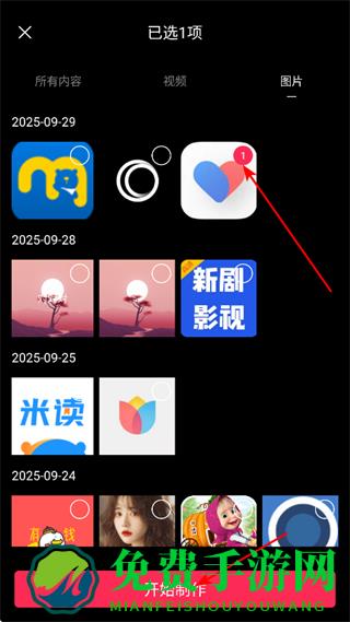 1、进入首页后,点击开始创作,进入素材选择页面。