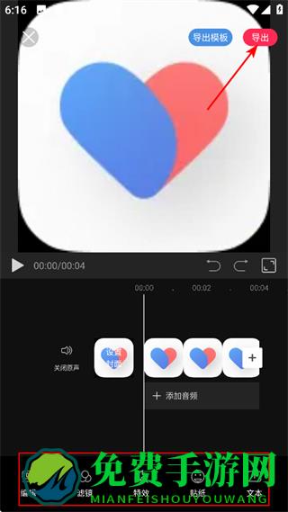 3、可使用编辑与滤镜等功能编辑视频,编辑完成后点击导出。
