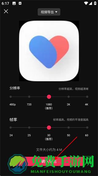 4、设置分辨率、帧率后,点击确认导出,完成视频导出。
