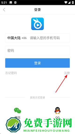 3、在登录页面,点击注册,进入注册页面。