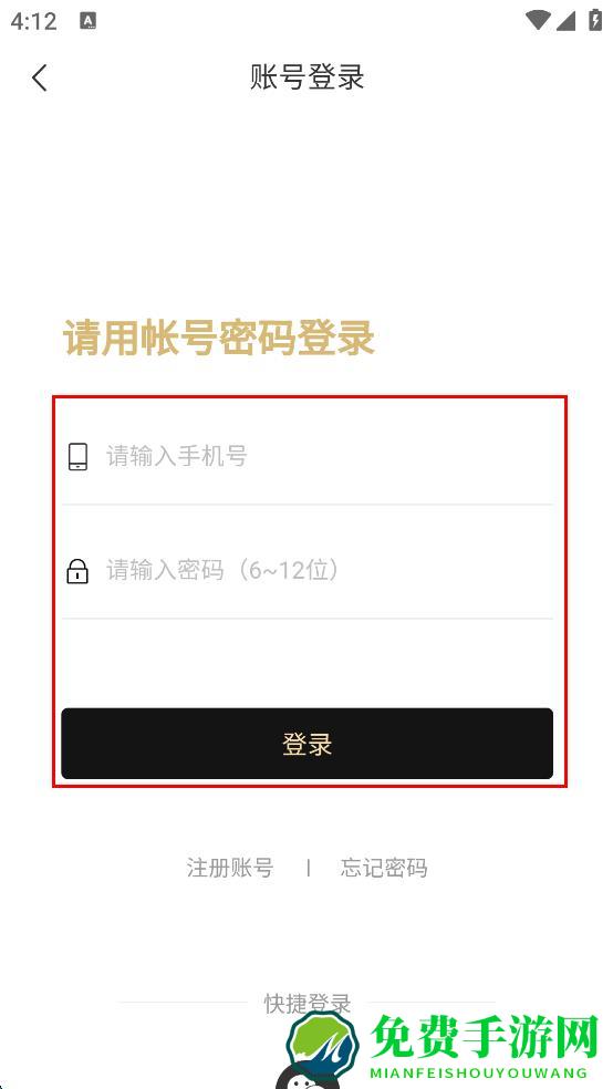 4、在账号登录页面输入手机号和密码,点击登录按钮完成登录。
