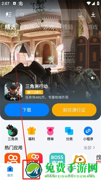 1、打开应用宝,在其中点击下方的【秒玩】栏目,点击切换到该界面;