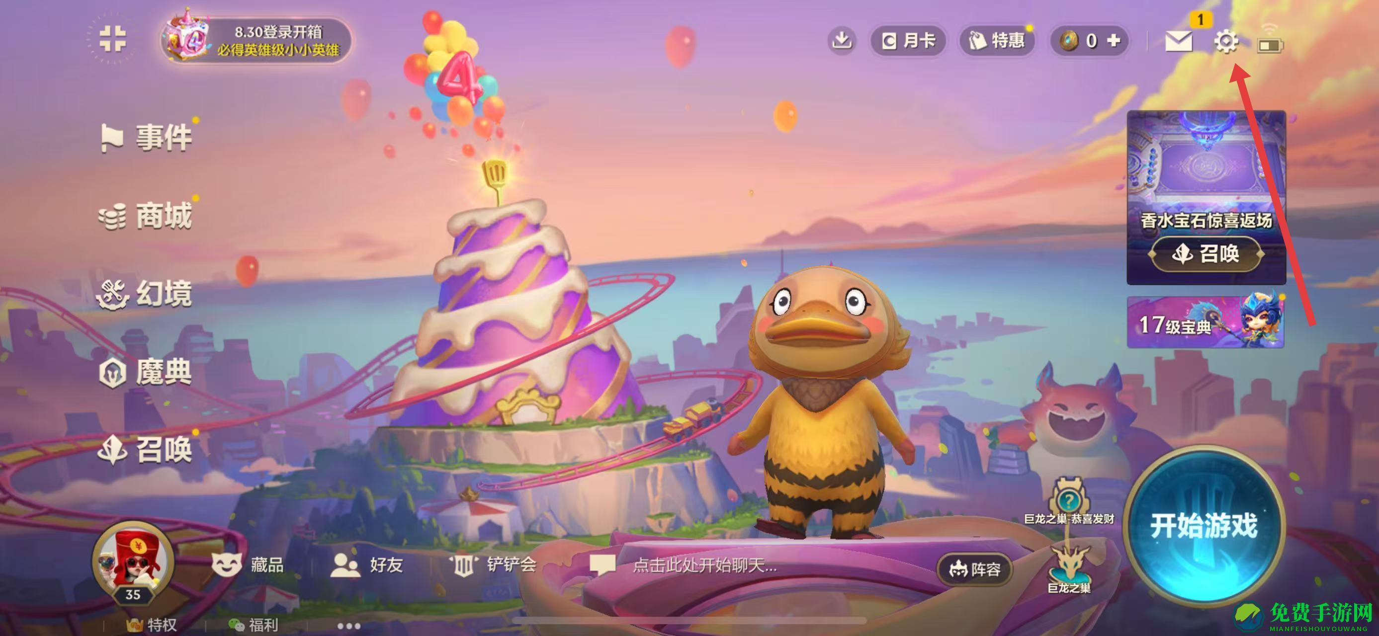 1、打开金铲铲之战游戏,在主界面点击右上角的设置图标,进入设置页面。