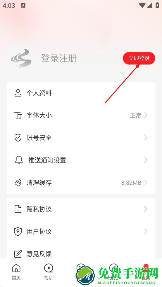 3、在个人相关页面点击立即登录选项,进入免密登录页面。