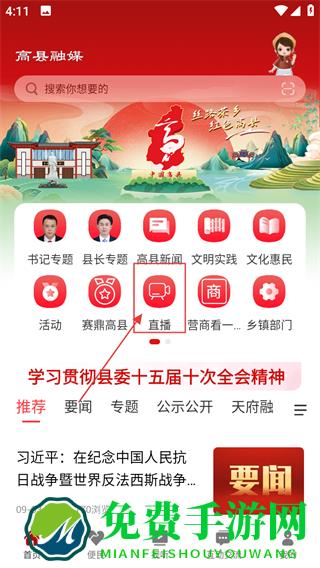 1、在高县融媒首页,点击直播,进入活动直播页面。