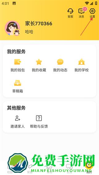 1、点击掌通家园页面底部的我的,进入个人页面。