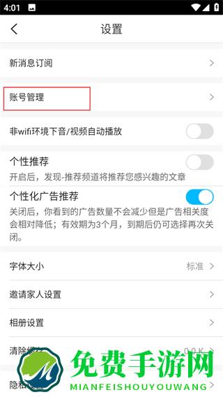 3、在设置页面,点击账号管理,进入账号管理页面。