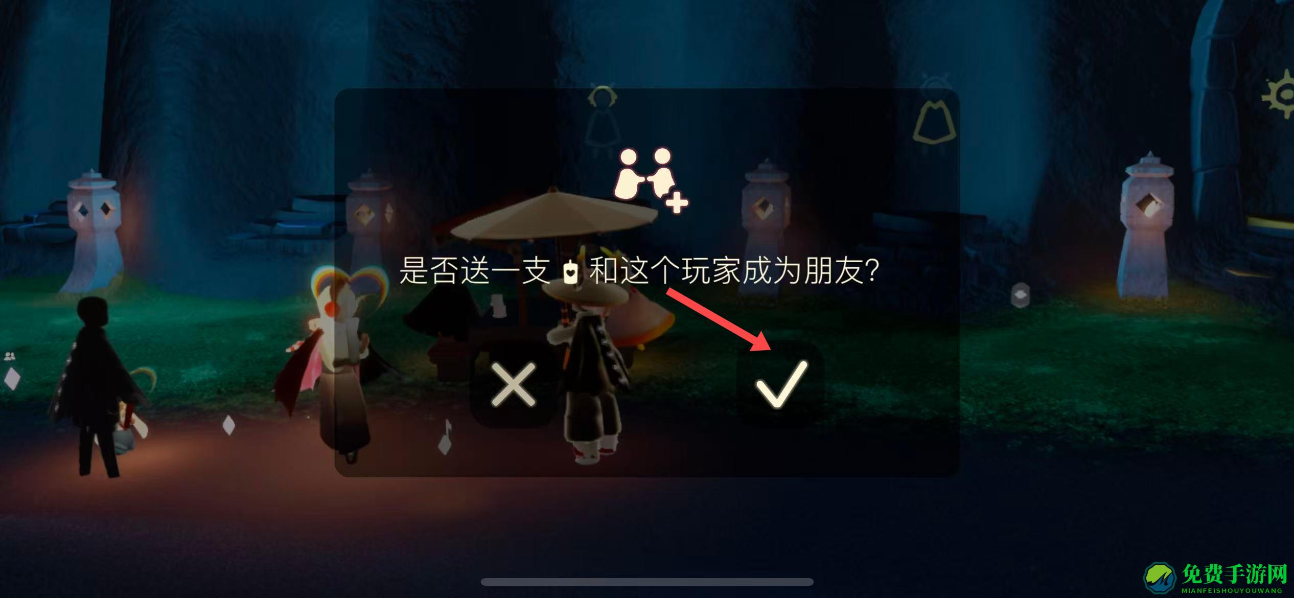 3、确认赠送蜡烛,点击加好友图标后,点击对勾图标