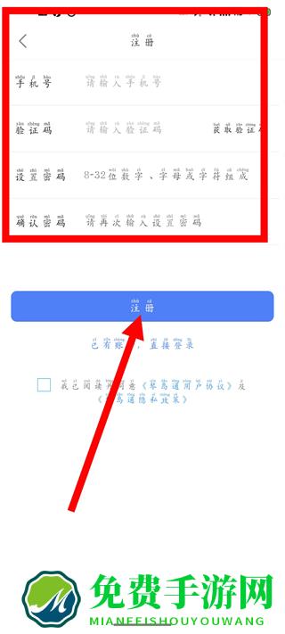 4、依次输入手机号、验证码、设置密码、确认密码,勾选后,点击注册完成账号注册。
