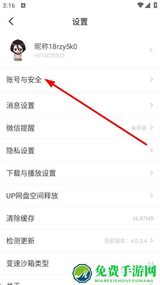 2、在设置页面中,点击账号与安全选项进入相关界面。