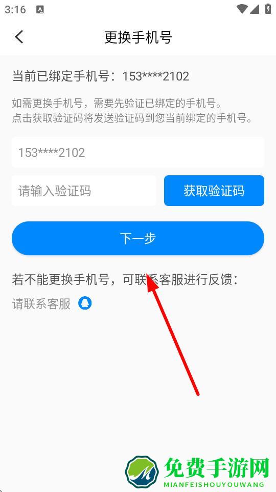 4、在更换手机号页面,按提示获取并输入验证码后点击下一步完成操作。