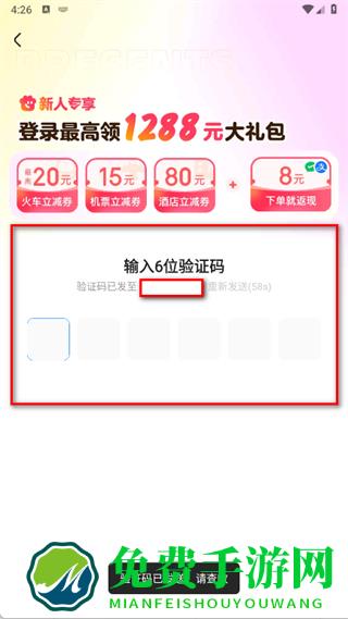4、在验证码输入页面,填写收到的6位验证码完成注册登录。