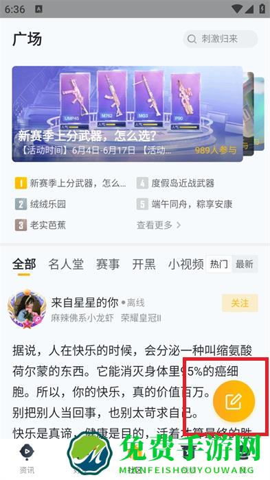 2、在社区频道,点击其中的【书签】图标,就可以进入到发布动态的界面;