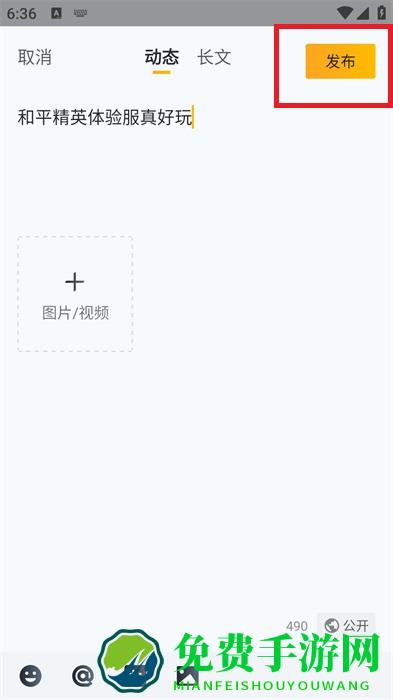 4、添加好所有的动态内容之后,用户就可以点击右上角的【发布】发布动态在社区之中。