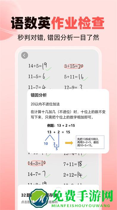 1.口算检查:拍照检查、秒出结果,小学生家长必备;