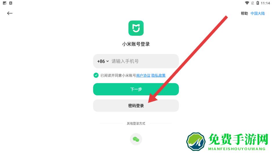2、在登录界面中,可以点击密码登录按钮,切换为密码登录方式。