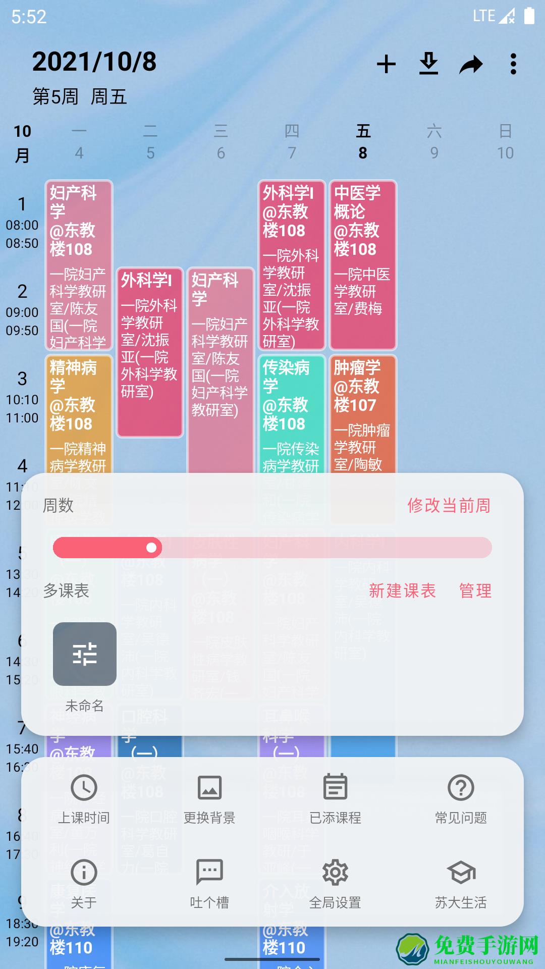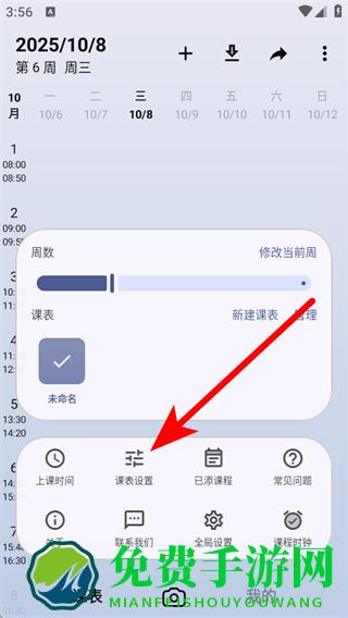 2、在弹出的选项中,点击课表设置的按钮,进入课表设置页面。