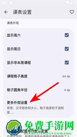 3、在课表设置页面,点击更多外观设置,进入课表外观的页面。