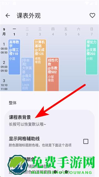 4、在课表外观页面,找到课程表背景,按提示进行背景更换操作。