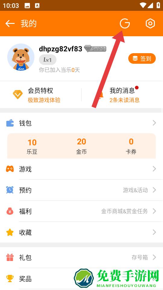 1、打开当乐APP软件,需要点击右下角进入我的页面,接着点击上方G按钮,进入谷歌安装器测试版页面。