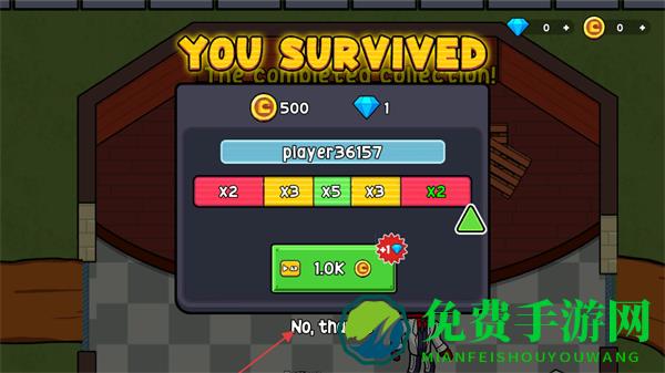 4、成功收集完所有目标物品后,出现YOUSURVIVED提示,可选择领取奖励或点击No,thanks退出结算界面。