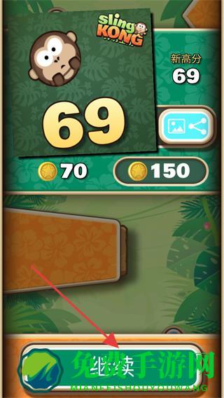 4、结束游戏后,查看得分,如获得69分,点击继续可重新开始挑战。