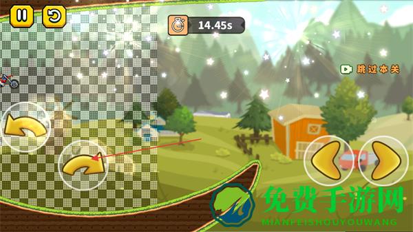 3、遇到环形等特殊地形时,利用前进按钮保持摩托平衡和速度,避免翻车或掉落。