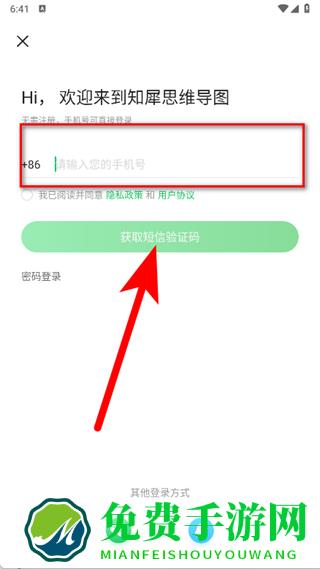 3、在登录页面,输入手机号,勾选后点击获取短信验证码。