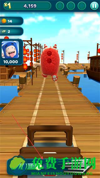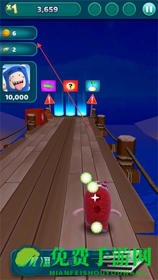3、遇到带有问号标识的道具箱,靠近获取随机道具,利用道具效果如加速等,提升跑酷表现。