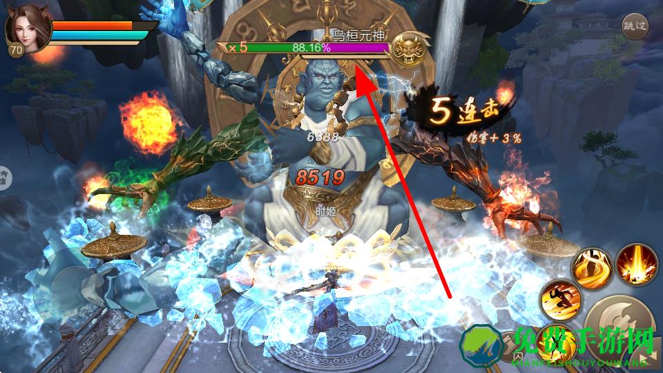 2、点击右侧对应技能图标,对敌人释放技能,不同技能有不同效果,合理使用能高效打击敌人。