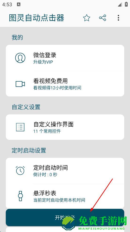 2、在图灵自动点击器主界面,点击“开始服务”,进入相关设置页面。