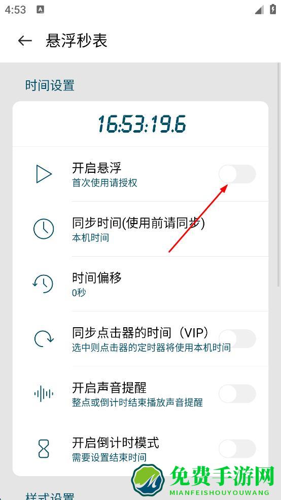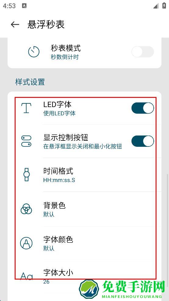 4、开启悬浮后,在悬浮秒表设置页面,对LED字体、显示控制按钮、时间格式等样式进行设置即可。