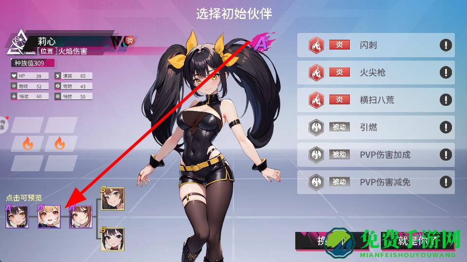 2、挑选初始伙伴中,点击不同伙伴头像预览,了解其技能等信息,选好后点击就是你了,确定初始伙伴。