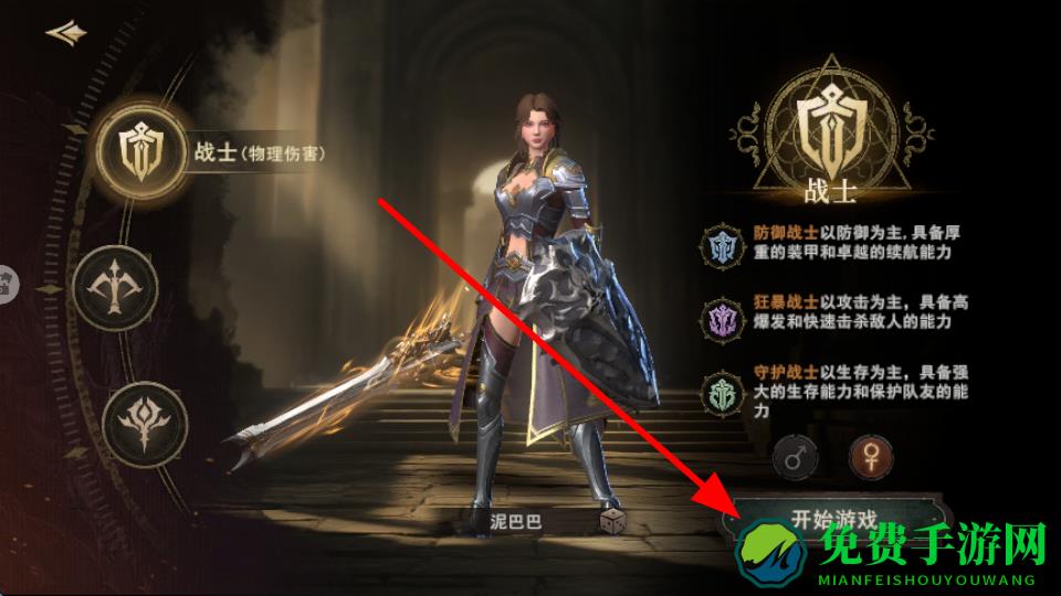 1、角色创建挑选战士等职业,不同战士分支有不同特点,选好后点击开始游戏,进入冒险世界。